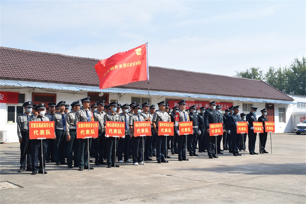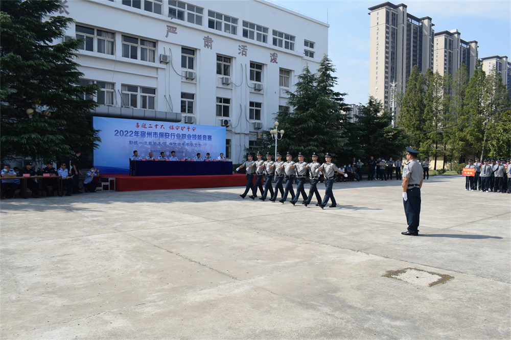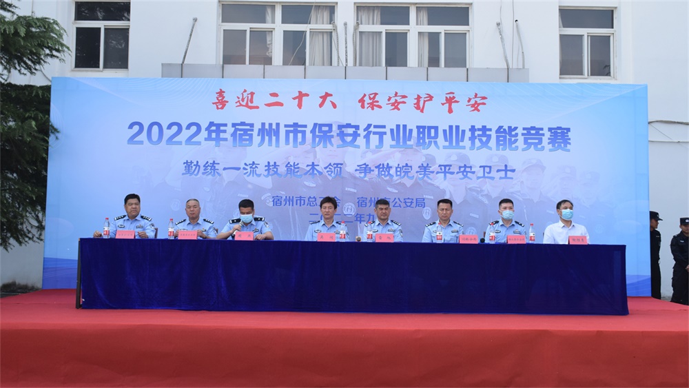 9月26日,宿州市公安局、宿州市总工会在宿州市人民警察学校联合举办了以“勤练一流技能本领,争做皖美平安卫士”为主题的2022年宿州市保安行业职业技能竞赛活动,共有来自全市保安服务企业的10支参赛代表队、120余名保安员参加本次赛事。宿州市纪委监委驻局纪检监察组组长、市公安局党委委员陈颖,宿州市总工会副主席赵猛和宿州市公安局工会、督察、人民警察学校及各县(区)保安监管部门负责人莅临竞赛现场观摩指导。公司董事长、总经理陶胜勇作为全市保安服务企业代表受邀出席开幕式。